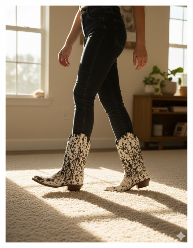 - Square Toe & Low Block Heel: Comfortable walking while keeping cowboy silhouette