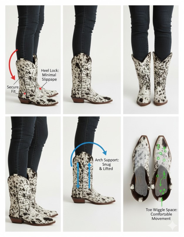After proper break-in, cowhide boots mold to your specific foot shape. The leather flexes naturally at your flex points. The heel cup shapes to your heel. This custom fit is why cowhide boots feel better than synthetic boots that never truly break in.